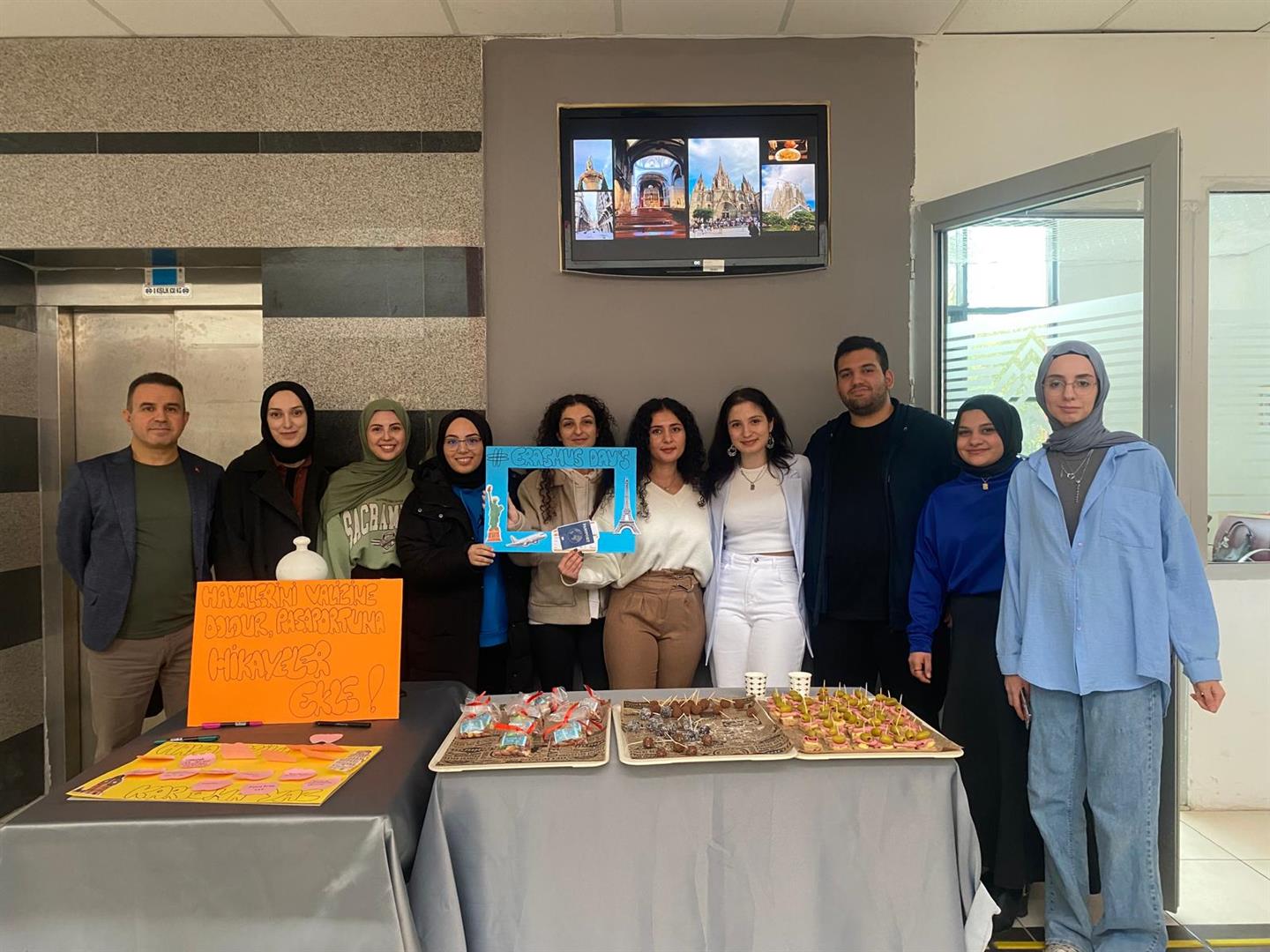 Erasmus Days etkinlikleri kapsamında 16.10.2025 tarihinde Perşembe günü Sağlık Bilimleri Fakültesinde stant açılmış, öğrencilere ve personele yönelik Erasmus bilgilendirme ve anı paylaşımı yapılmıştır. Fakülte Erasmus temsilcisi Dr. Öğr. Üyesi T. Barış Değer öncülüğünde yapılan etkinlikte, geçen sene Erasmus ile Polonya’ya giden öğrenciler Tuğba Maraz ve Ramazan Karakaya tarafından yapılan sağlıklı atıştırmalıklar ikram edilmiştir. Standa gelen öğrenciler hayallerini kağıtlara yazmışlar ve merak ettikleri soruları Erasmusa giden öğrencilerimize bizzat sorma imkanı elde etmişlerdir. Sayın dekanımız Prof. Dr. Özcan Özkan ve öğretim üyelerimizin de katılım sağladığı etkinlik fotoğraf çekimleriyle son bulmuştur.