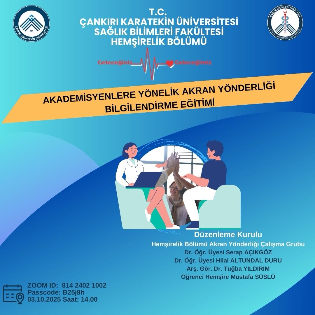| 13.10.2023 | Hemşirelik Bölümü | 2023-2024 Eğitim Öğretim Yılı Hemşirelik Bölümü Öğrenci-Akademisyen Hemşire Buluşması Paneli   |   | İslami İlimler Fakültesi Konferans Salonu | https://sbf.karatekin.edu.tr/tr/hemsirelik-bolumu-ogrenci--akademisyen--hemsire-bulusmasi-39333-etkinligi-icerigi.karatekin |