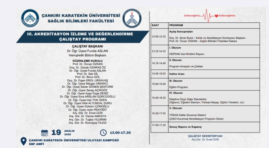 HEMŞİRELİK BÖLÜMÜ III.AKREDİTASYON İZLEME VE DEĞERLENDİRME ÇALIŞTAYI PROGRAMI